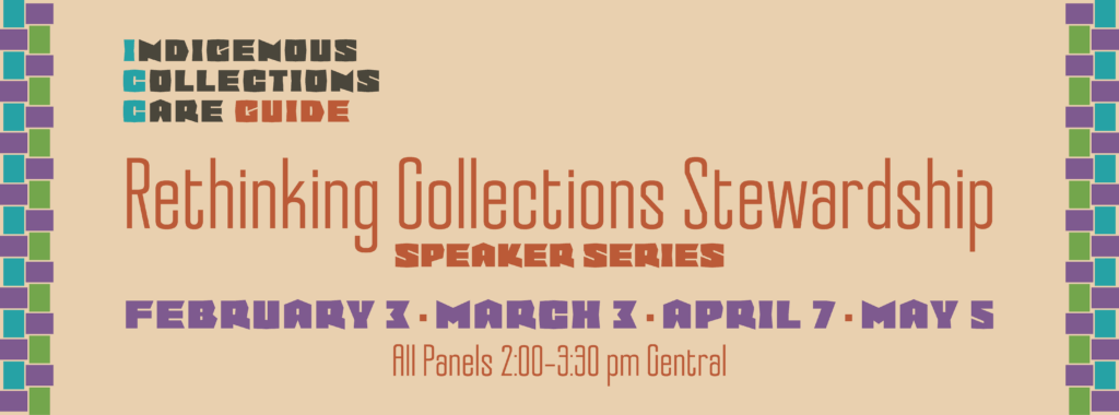 In partnership with the Indian Arts Research Center (IARC) at the School for Advanced Research and Gilcrease Museum, the Indigenous Collections Care (ICC) Speaker Series explores new frameworks for museum collections stewardship centered on Indigenous knowledge and values. Leading up to the anticipated release of the Indigenous Collections Care Guide, this series will highlight key components and themes within the upcoming Guide.